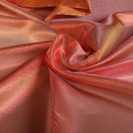Dieser Stoff hat eine weiche, glatte Rückseite und eine "Krepp"-Vorderseite. Es ist ein leichter Stoff und wiegt 50 g/m2. Der Stoff hat einen leichten Glanz, "Lurex"-Look. Gut geeignet für die Dekoration und für die Herstellung von Vorhängen.