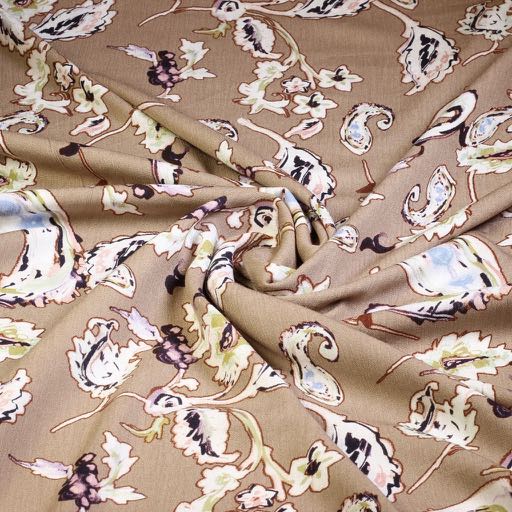 Krepp Viskose Paisley Blume ecru