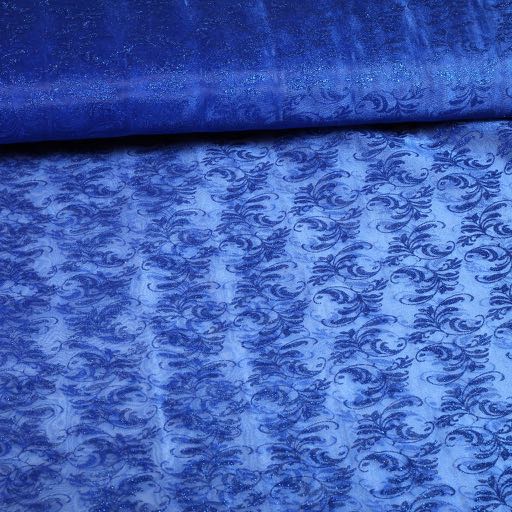 Organza bedruckt Glitzer Brokat Kobalt