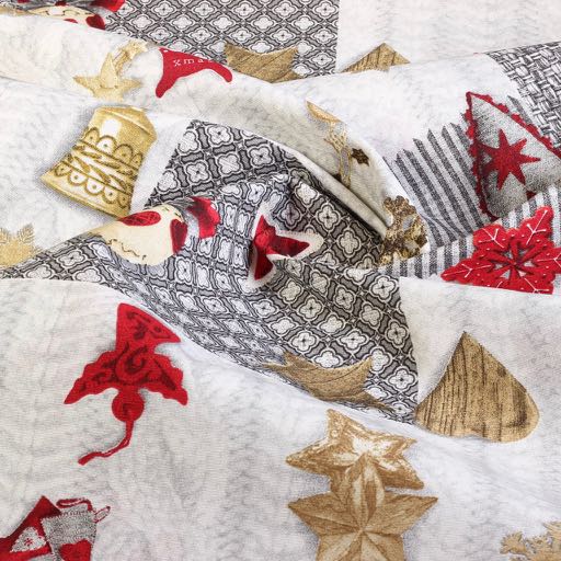 Dieser gewebte Stoff für Ottomanen hat eine kleine Rippenstruktur und ist mit einem schönen Weihnachtsmotiv bedruckt. Ideal, um Ihren Tisch zu schmücken oder als Dekoration, z.B. für niedliche Kissen oder Ihren Weihnachtsbaum.