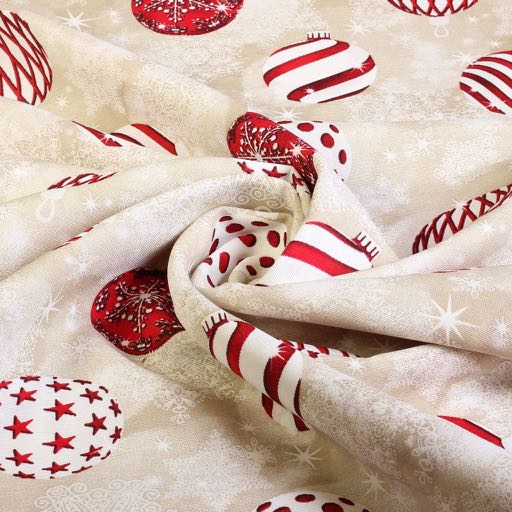 Dieser gewebte Stoff für Ottomanen hat eine kleine Rippenstruktur und ist mit einem schönen Weihnachtsmotiv bedruckt. Ideal, um Ihren Tisch zu schmücken oder als Dekoration, z.B. für niedliche Kissen oder Ihren Weihnachtsbaum.